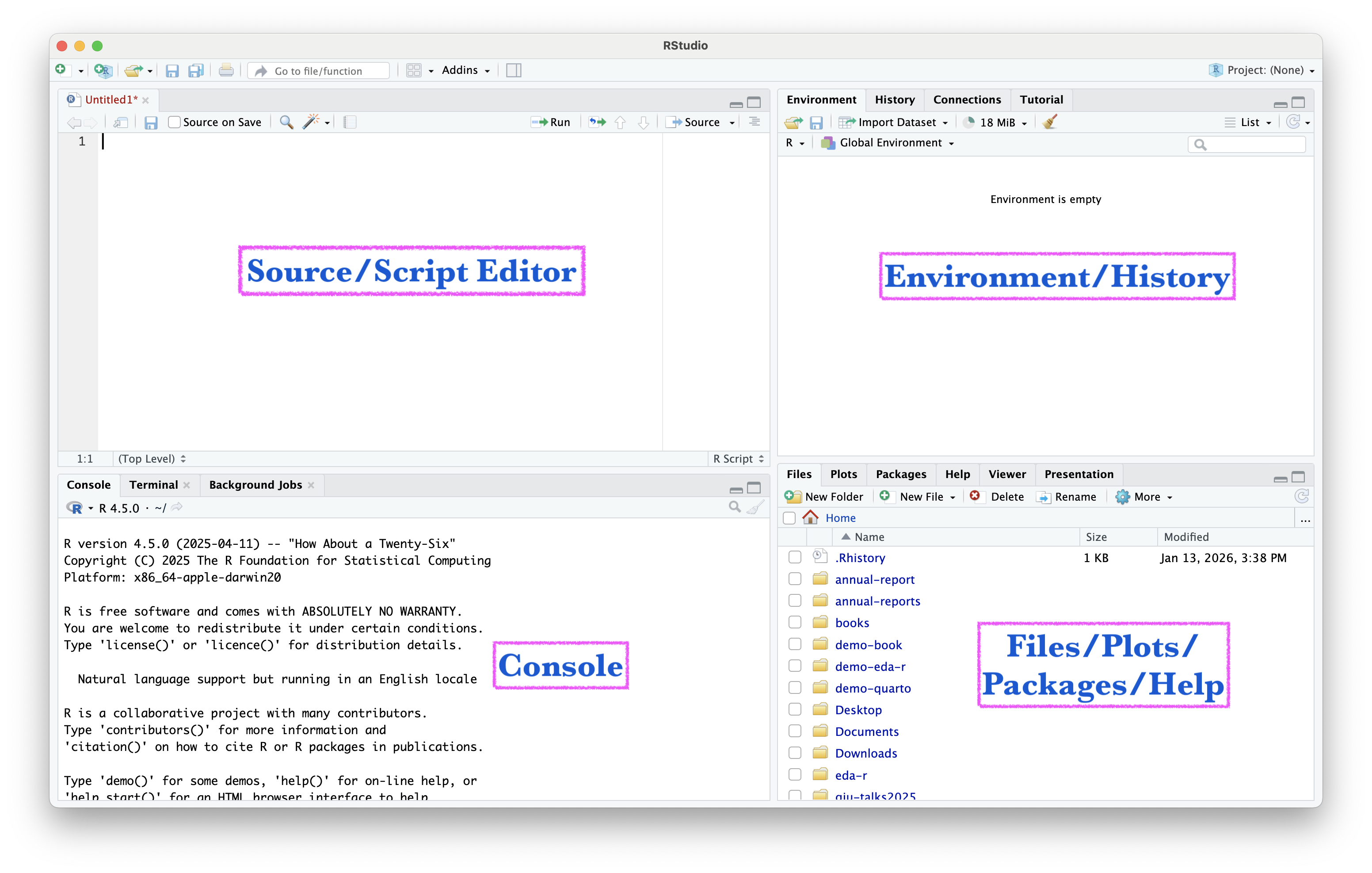 “The RStudio integrated development environment (IDE) is a set of tools built to help you be more productive with R and Python.”